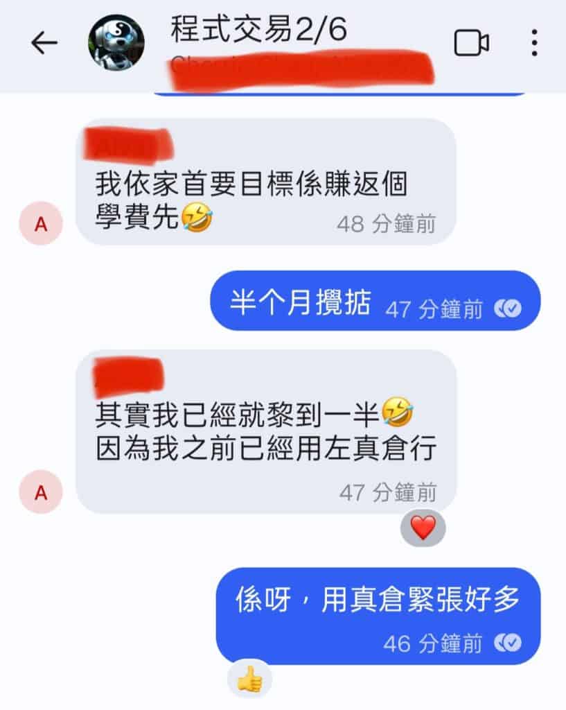 非常高興有程式交易學員話我知,未上哂堂就已經賺了一半學費。